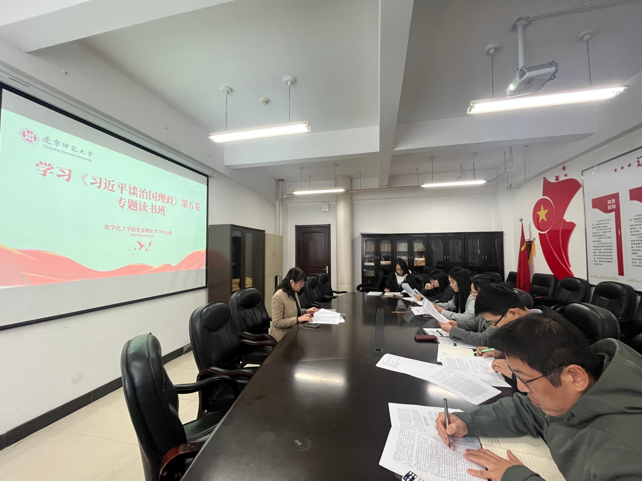 2025年11月3日,化学化工学院召开学习《习近平谈治国理政》第五卷专题读书班暨党委理论学习中心组集体学习会议,集体学习《习近平谈治国理政》第五卷,并结合工作实际进行研讨交流。会议由学院党委书记于伟主持,全体中心组成员参加学习。