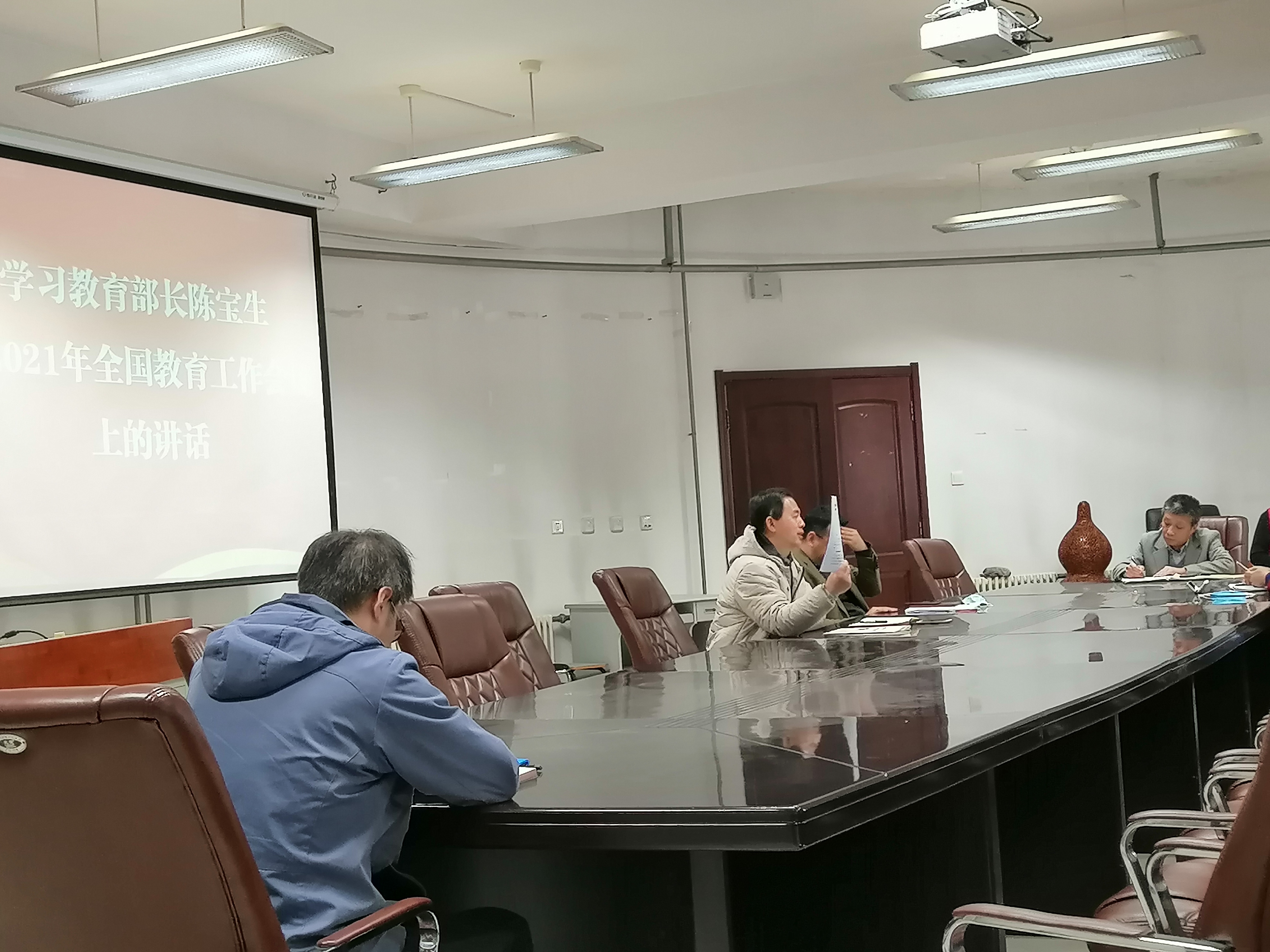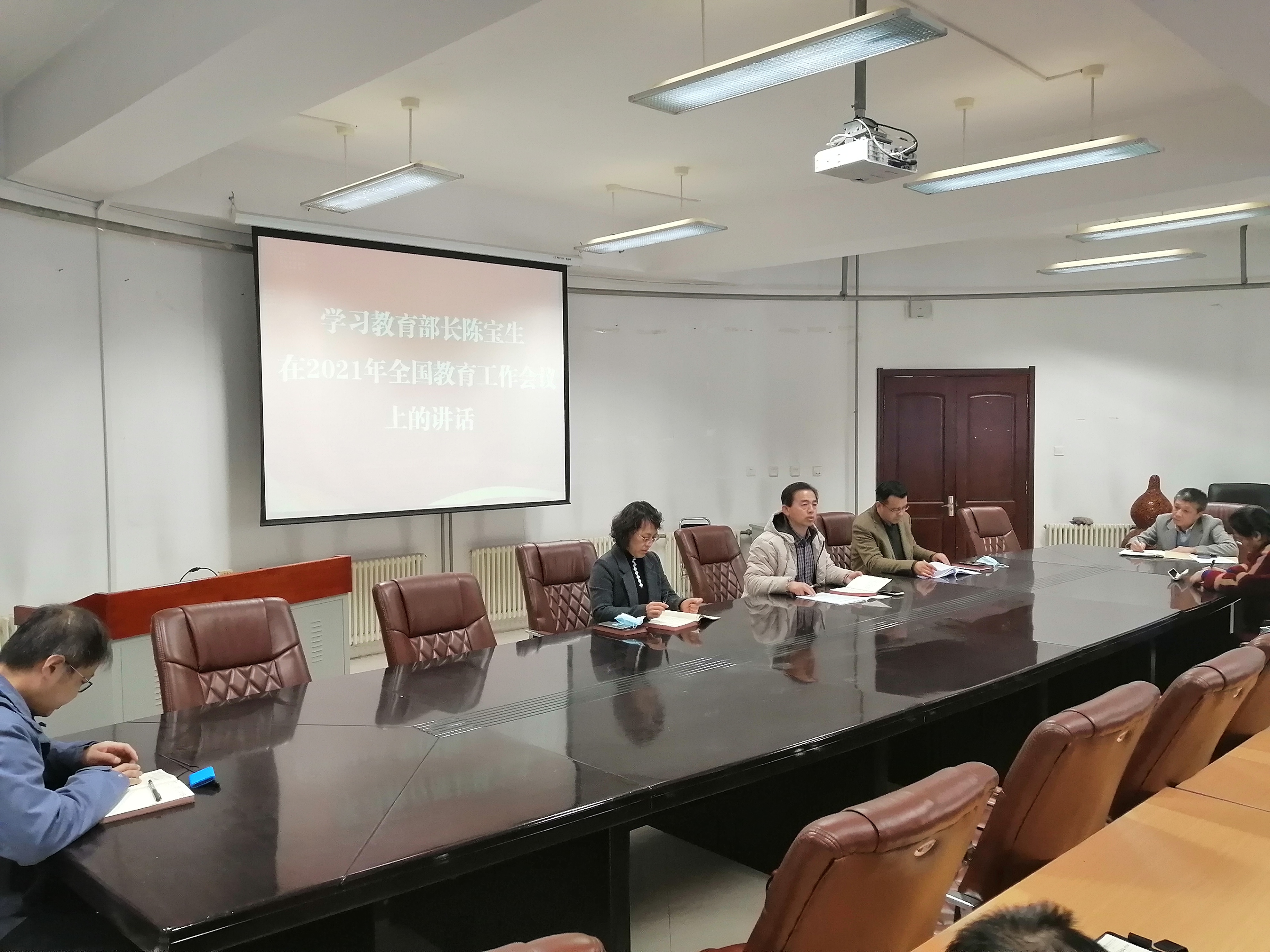 为了响应我校2021年的整体工作部署,了解教育事业新形势、新政策和新理念,在“十四五”规划的开局之年以饱满的热情开展教学和科研工作,我院全体教职工于3月12日下午14:00时于理化楼C401会议室集中,在学院党委刘智广书记的带领下,深入学习了“教育部长陈宝生在2021年全国教育会议上的讲话”。