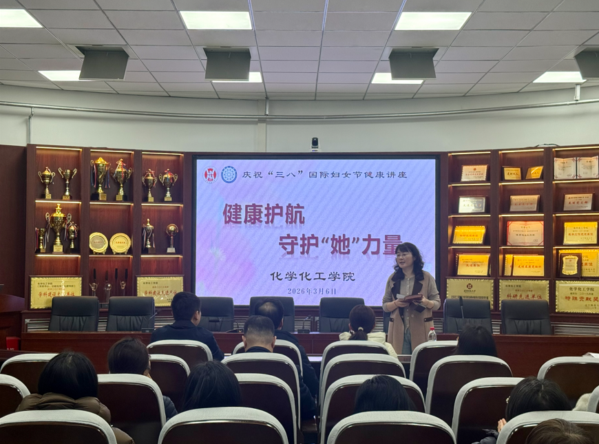三月春风暖,健康伴芳华。为庆祝 “三八”国际妇女节,切实关爱教工身心健康,2026年3月6日下午2点,化学化工学院在理化楼 C501 成功举办 “健康护航,守护‘她’力量”主题健康讲座暨诊治活动。本次活动特邀大连医科大学附属第二医院多位资深医学专家亲临授课,兼顾全体教工健康需求,既为女性教工送上专属健康守护,也助力男教工掌握科学健康知识,以更好地关爱家人、守护身边“她”力量。